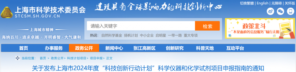 關于發(fā)布上海市2024年度“科技創(chuàng)新行動計劃”科學儀器和化學試劑項目申報指南的通知滬科指南