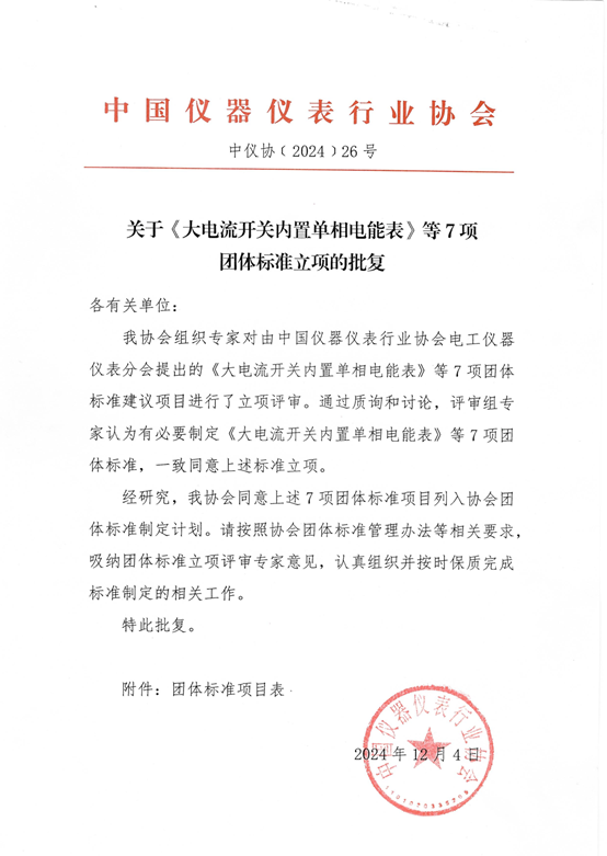 近日,根據(jù)《中國儀器儀表行業(yè)協(xié)會(huì)團(tuán)體標(biāo)準(zhǔn)管理辦法》的規(guī)定,經(jīng)審查,對(duì)由中國儀器儀表行業(yè)協(xié)會(huì)電工儀器儀表分會(huì)提出的《大電流開關(guān)內(nèi)置單相電能表》等7項(xiàng)團(tuán)體標(biāo)準(zhǔn)進(jìn)行立項(xiàng)(標(biāo)準(zhǔn)編號(hào)和名稱見下表),特此公告。