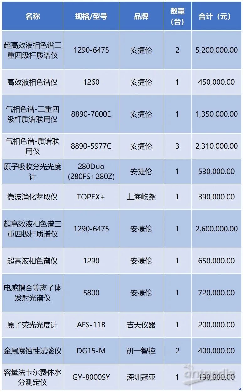 烏魯木齊海關(guān)近日再次發(fā)布關(guān)于海關(guān)實驗室儀器設(shè)備更新項目中標公告,本次采購的16臺設(shè)備涉及超高效液相色譜三重四級桿質(zhì)譜儀、氣相色譜-三重四級桿質(zhì)譜聯(lián)用儀、電感耦合等離子體發(fā)射光譜儀等一批分析測試設(shè)備,安捷倫、上海屹堯、吉天儀器等品牌中標,其中安捷倫占據(jù)11臺。