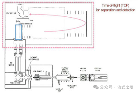 富集后的離子云被送到時(shí)間飛行質(zhì)譜儀(TOF-MS)中,根據(jù)離子的質(zhì)荷比(m/z)對離子進(jìn)行分離和檢測,不同質(zhì)荷比的離子在飛行時(shí)間上有所差異,TOF-MS 用于對經(jīng)過 ICP-MS 離子化后的金屬離子進(jìn)行精確測量,實(shí)現(xiàn)了對不同金屬標(biāo)記的生物分子的準(zhǔn)確識(shí)別和定量,過程如下(圖2-5):