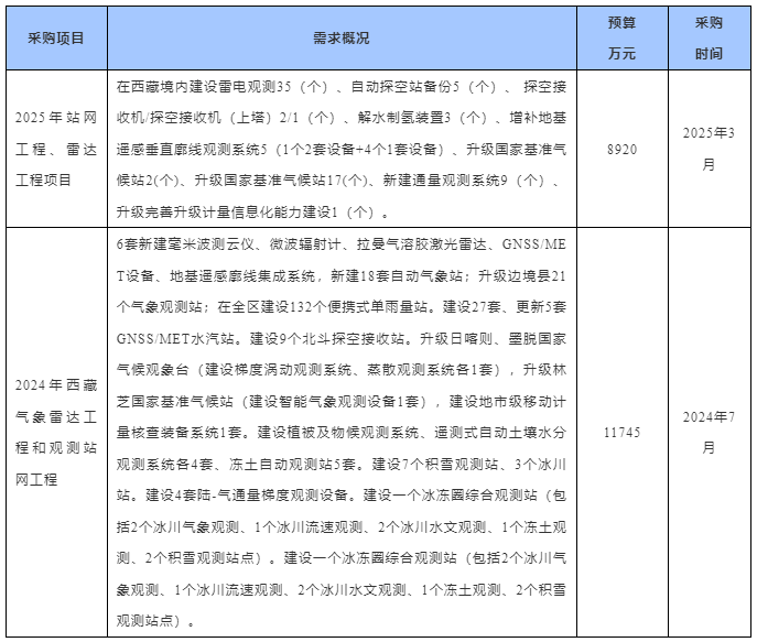 西藏自治區(qū)大氣探測技術與裝備保障中心2024年6月~2025年3月儀器設備采購意向匯總表