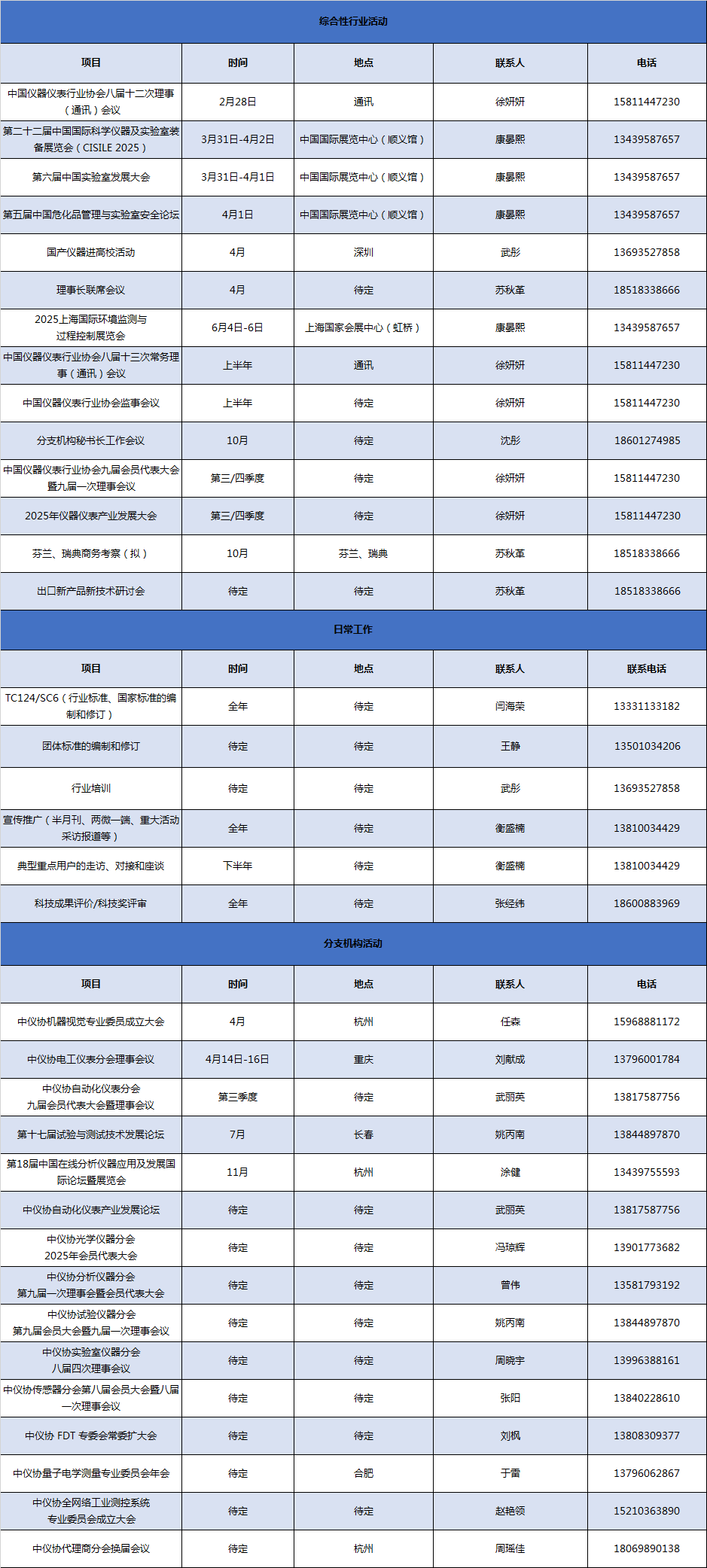 為發揮中國儀器儀表行業協會支撐政府、服務行業的橋梁作用,促進行業間交流與合作,引導產業健康發展,推進各項工作有序開展,更好地為協會會員企業服務,特將中國儀器儀表行業協會2025年主要工作及活動計劃整理如下,供大家了解和參與。