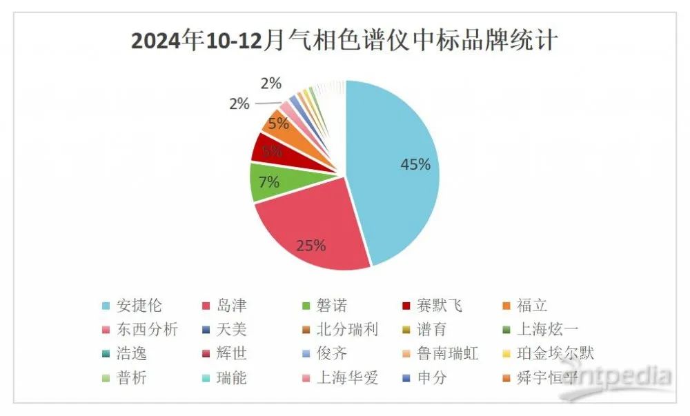 2024年全年的中標數據來看,國產品牌的氣相色譜儀總中標占比已達到25%,即占據了市場的四分之一份額。這一成績不僅展現了國產品牌的強勁發展勢頭,也凸顯了國產氣相色譜儀在市場中日益重要的地位,未來有望進一步突破國際品牌的市場壟斷,實現更大的發展。