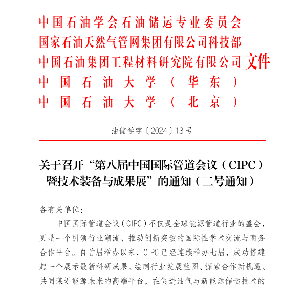 為深化行業協同創新,推動儀器儀表行業在能源管道行業用戶領域深耕,現轉發《關于召開“第八屆中國國際管道會議(CIPC)暨技術裝備與成果展”的通知》(詳見附件),誠邀各會員單位及相關企業積極參與。