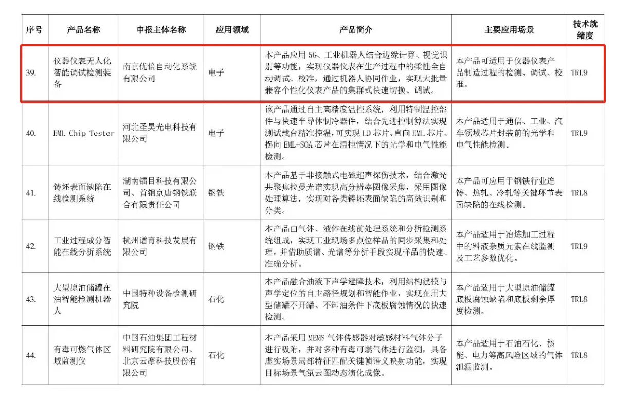 近日,在工業(yè)和信息化部裝備工業(yè)一司指導(dǎo)下,智能檢測裝備產(chǎn)業(yè)發(fā)展聯(lián)盟公示了《智能檢測裝備創(chuàng)新產(chǎn)品目錄(第二批)》。南京優(yōu)倍自動化系統(tǒng)、優(yōu)倍電氣技術(shù)公司自主開發(fā)的“儀器儀表無人化智能調(diào)試檢測裝備”成功入選該創(chuàng)新產(chǎn)品名錄。