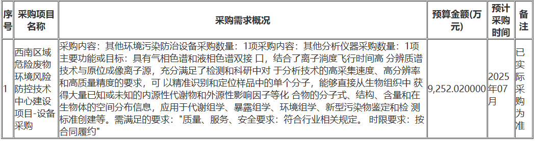 9252萬,四川生態環境科學院2025年度政采意向