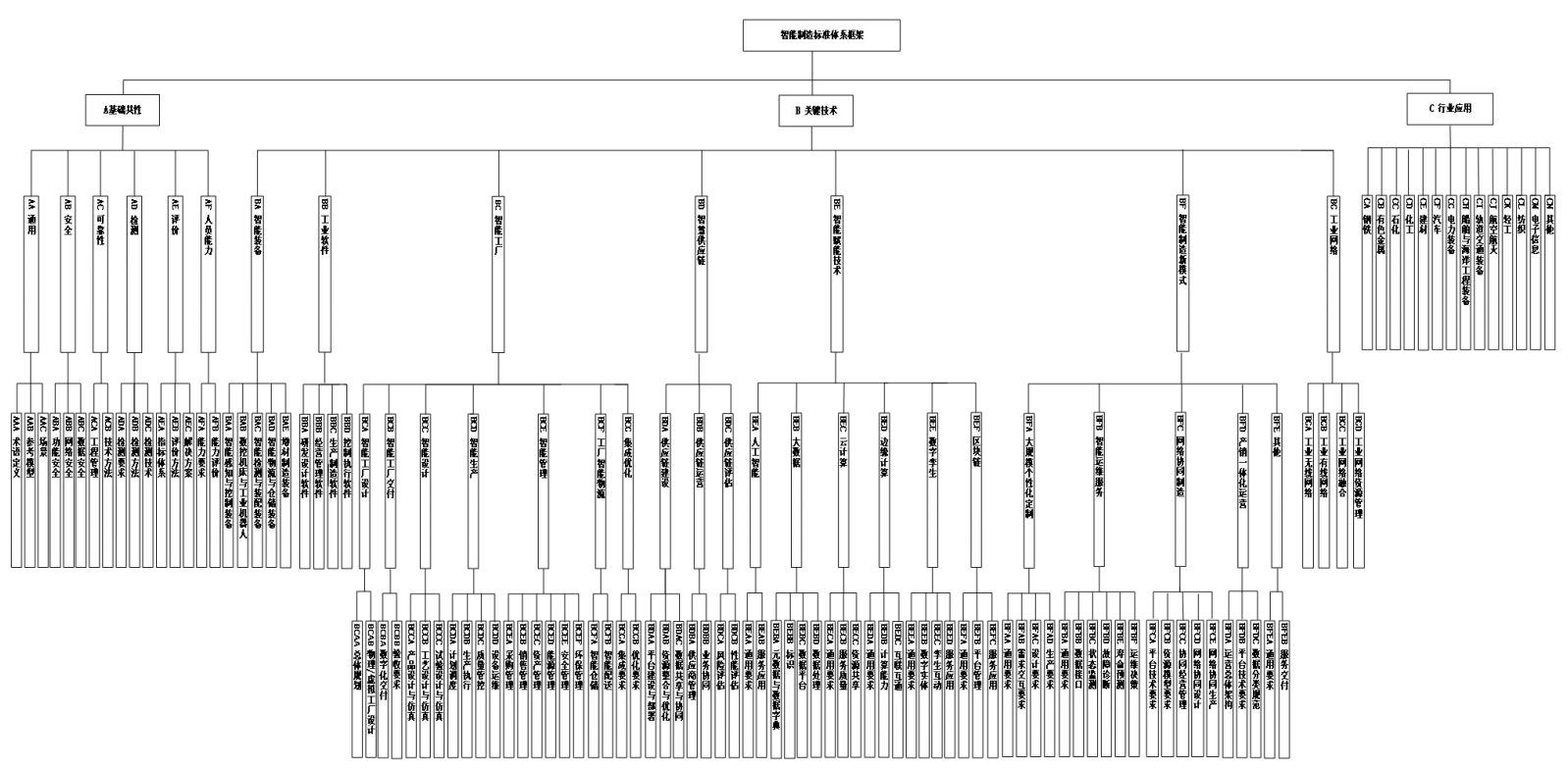 智能制造標準體系框架圖包含了智能制造標準體系的基本組成單元,具體包括A基礎共性、B關鍵技術、C行業(yè)應用等3個部分,如圖3所示。