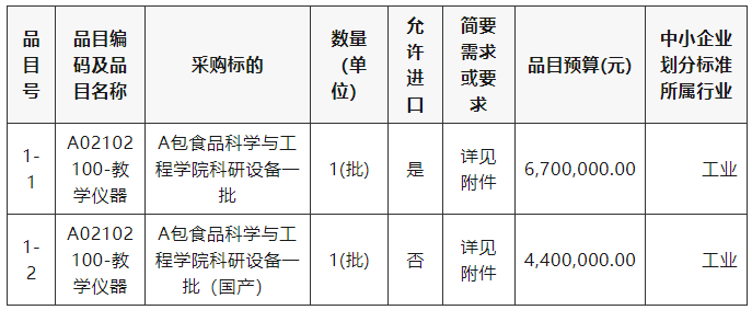 采購包1(A包食品科學與工程學院科研設備一批):