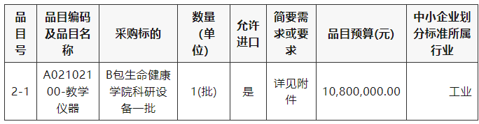 采購包2(B包生命健康學院科研設備一批):