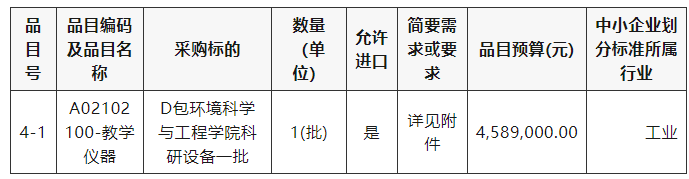 采購包4(D包環境科學與工程學院科研設備一批):