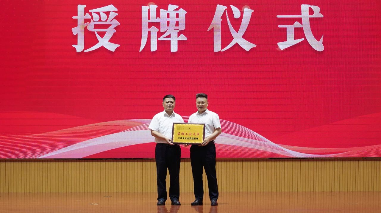 會議期間舉行了“大學(xué)生社會實踐基地”授牌儀式,安徽工業(yè)大學(xué)黨委書記陸林與天康集團黨委副書記、總經(jīng)理毛文章代表雙方授接牌匾。