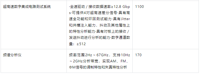 超高速數(shù)字集成電路測(cè)試系統(tǒng)(1100萬(wàn)元): 核心指標(biāo)包括≥12.8 Gbps 的數(shù)據(jù)速率、≥4對(duì)超高速差分信號(hào)、強(qiáng)大的抖動(dòng)注入與分析能力、≥512通道數(shù)。這瞄準(zhǔn)了高速SerDes (如PCIe 6.0/7.0, DDR5/LPDDR5X及更高)、網(wǎng)絡(luò)處理器、高端FPGA等器件的測(cè)試挑戰(zhàn)。