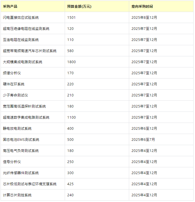 近日,工信部電子第五研究所(中國(guó)賽寶實(shí)驗(yàn)室)近期發(fā)布2025年7至12月政府采購(gòu)意向公告,電子測(cè)試測(cè)量設(shè)備采購(gòu)預(yù)算總額高達(dá)8796萬(wàn)元!這份重量級(jí)采購(gòu)清單,不僅是一份訂單,更是窺探中國(guó)電子產(chǎn)業(yè)核心測(cè)試需求與前沿技術(shù)發(fā)展方向的絕佳窗口。