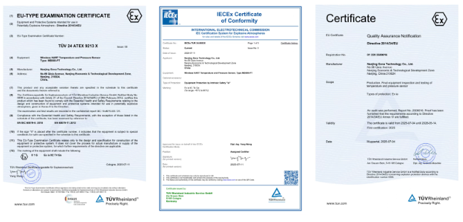 該產品通過Ex ia IIC T4 Ga級防爆認證,符合EN IEC 60079系列及IEC 60079系列國際標準,可在-40℃80℃的寬溫環境下穩定運行,能同時精準測量管道與容器內的溫度和壓力參數,完美適配石油、化工、天然氣等潛在爆炸性環境的嚴苛需求。