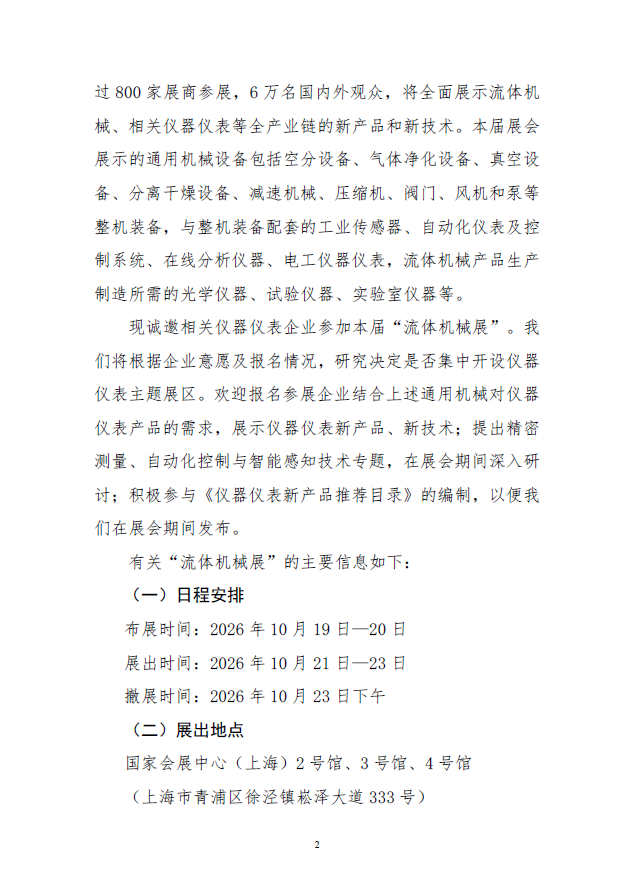 關(guān)于邀請(qǐng)參加2026第十三屆中國(guó)上海國(guó)際流體機(jī)械展