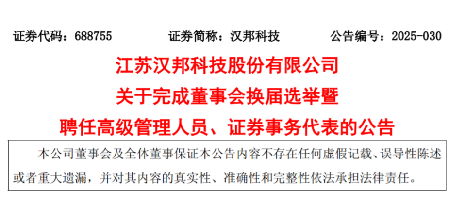 在高級管理人員團隊組建上,漢邦科技進行了精心布局。公司同意聘任李勝迎先生、湯業峰先生、金新亮先生、劉根水先生、嚴忠先生為公司副總經理(高級副總裁)。