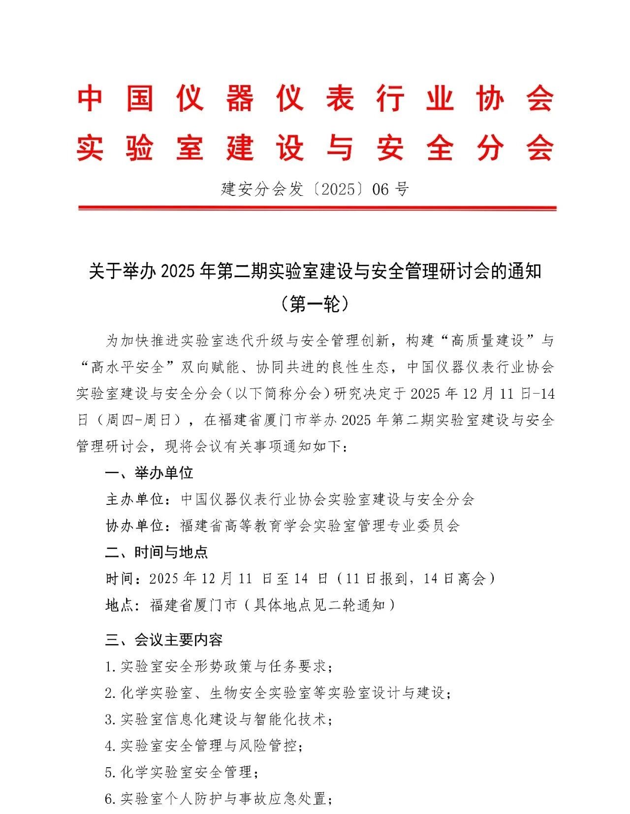 關(guān)于舉辦2025年第二期實(shí)驗(yàn)室建設(shè)與安全管理研討會
