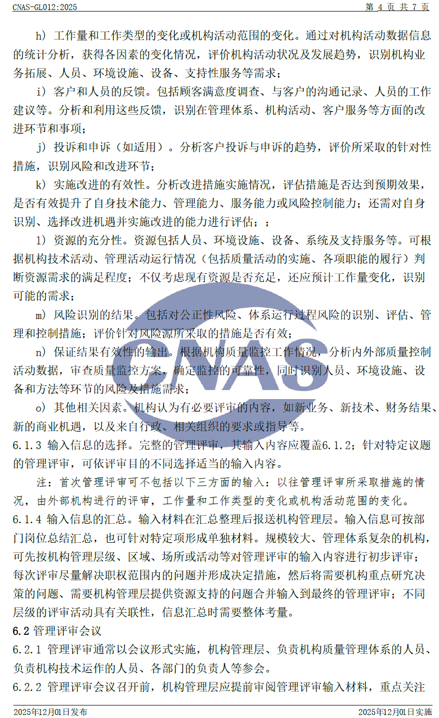 CNAS-GL012:2025 《實驗室和檢驗機構(gòu)管理評審指南》與CNAS-GL012:2018相比,除結(jié)構(gòu)調(diào)整和編輯性改動外,主要技術(shù)變化如下: