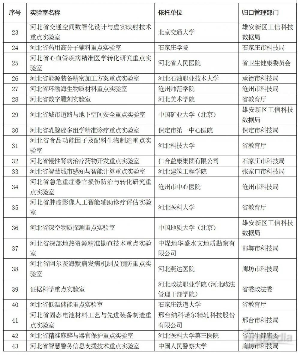 近日,河北省科學技術廳發布消息,2025 年度擬新建 43 家省重點實驗室和 86 家省技術創新中心,目前正處于公示階段。