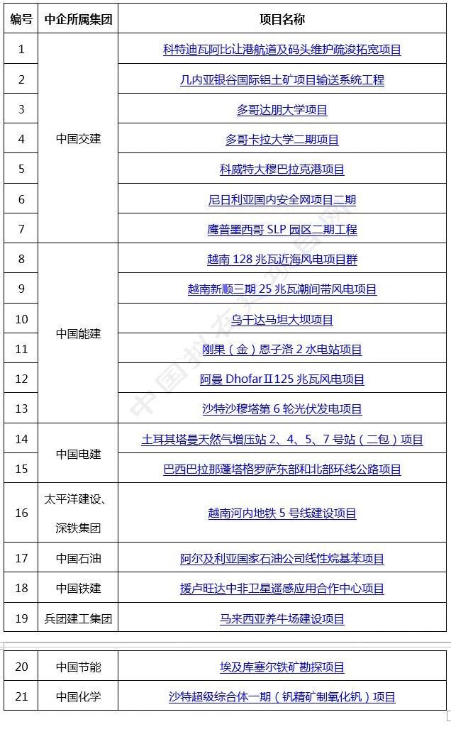 中企海外項目:上周新簽/中標/公告21個項目