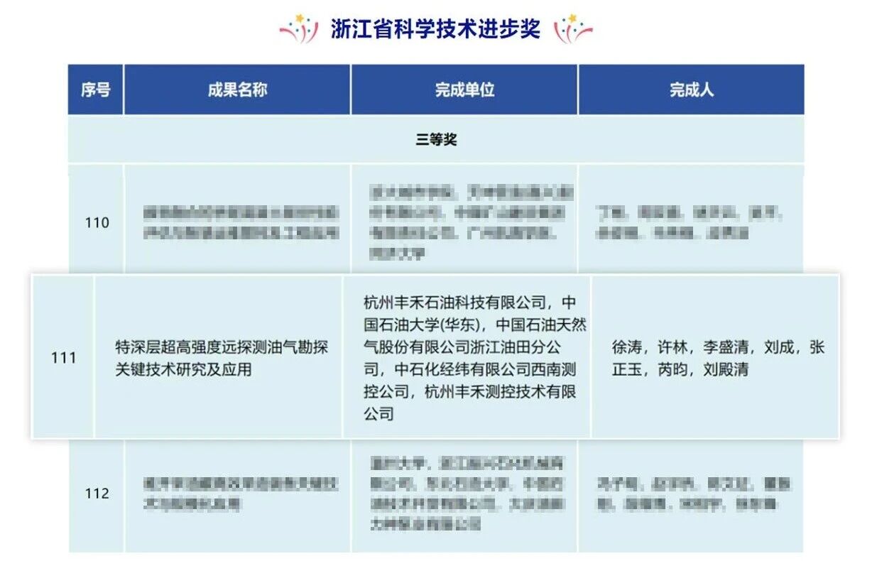 2月9日,浙江省“全省建設(shè)一流創(chuàng)新生態(tài)打造最具競爭力營商環(huán)境大會”在杭州舉行。由神開旗下控股子公司杭州豐禾石油科技有限公司(以下簡稱“神開豐禾”)牽頭,聯(lián)合中國石油大學(xué)(華東)、中國石油天然氣股份有限公司浙江油田分公司、中石化經(jīng)緯有限公司西南測控公司以及杭州豐禾測控技術(shù)有限公司共同完成的“特深層超高強(qiáng)度遠(yuǎn)探測油氣勘探關(guān)鍵技術(shù)研究及應(yīng)用”項(xiàng)目,榮獲浙江省科學(xué)技術(shù)進(jìn)步獎-三等獎。