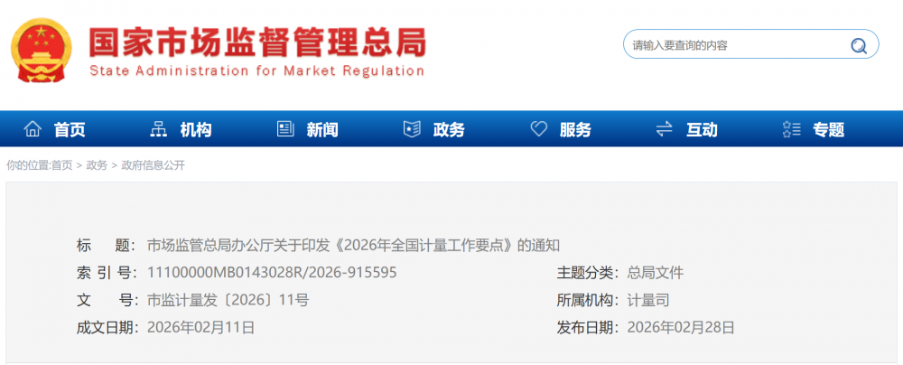 近日,市場監(jiān)管總局印發(fā)《2026年全國計量工作要點》,明確2026年將緊緊圍繞“講政治、強監(jiān)管、促發(fā)展、保安全”的工作總思路,緊扣“一個大市場、兩個綱要、三個監(jiān)管、四個安全”工作著力點,大力實施計量強基工程,科學(xué)謀劃“十五五”計量工作,加強基礎(chǔ)建設(shè),強化監(jiān)管,創(chuàng)新服務(wù),深化國際合作,加快構(gòu)建國家現(xiàn)代先進測量體系,為基本實現(xiàn)社會主義現(xiàn)代化筑牢計量基礎(chǔ)。