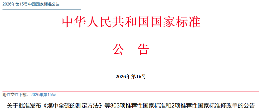 關(guān)于批準(zhǔn)發(fā)布《煤中全硫的測(cè)定方法》等303項(xiàng)推薦性國家標(biāo)準(zhǔn)和2項(xiàng)推薦性國家標(biāo)準(zhǔn)修改單的公告