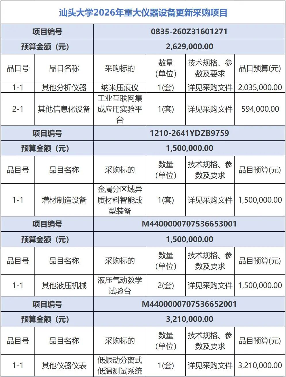 超1400萬元 汕頭大學2026年重大儀器設(shè)備更新