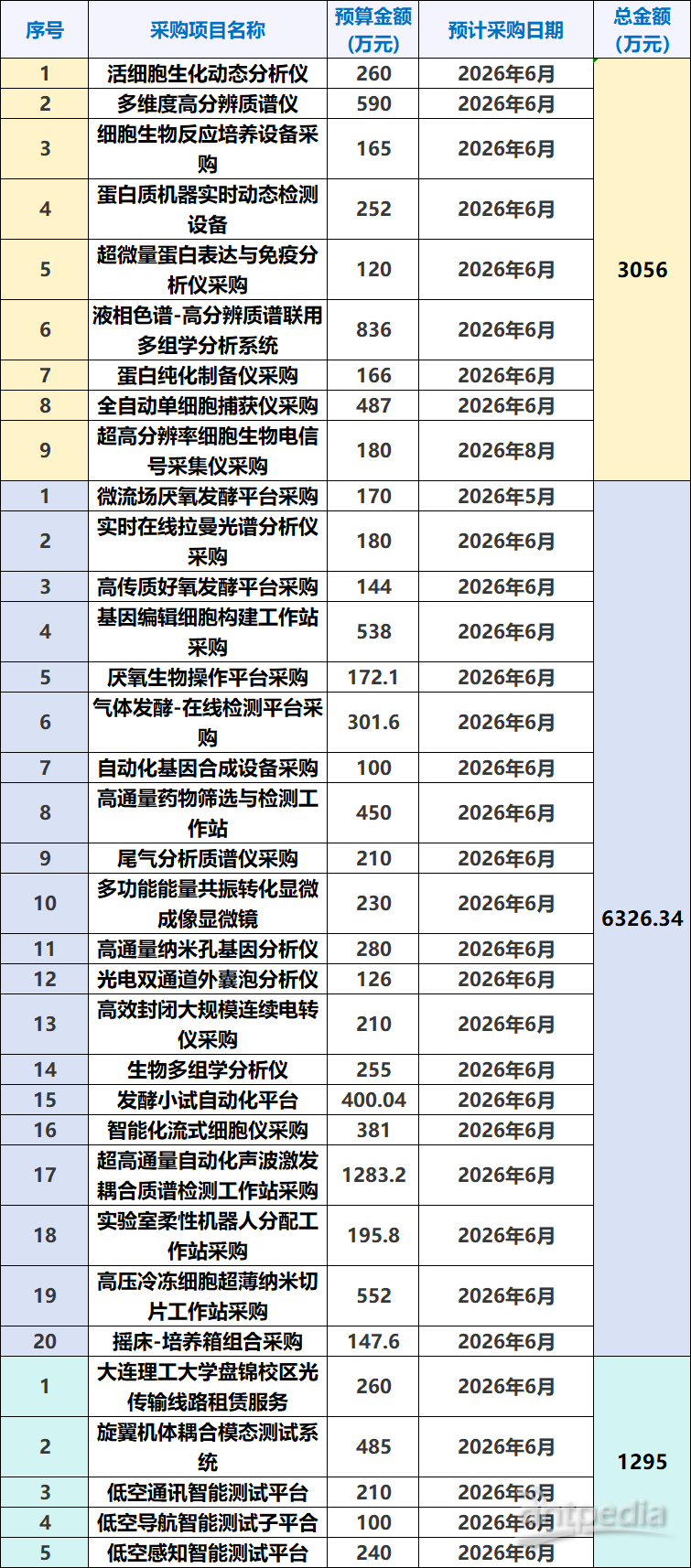 據(jù)中國政府采購網(wǎng)近日消息,繼公布6326.34萬元采購意向后,大連理工大學再發(fā)布多項2026年政府采購意向,采購預算金額分別為3056萬元、1295萬元,擬采購設備包含液相色譜-高分辨質(zhì)譜聯(lián)用多組學分析系統(tǒng)、全自動單細胞捕獲儀、多維度高分辨質(zhì)譜儀等大型精密儀器。